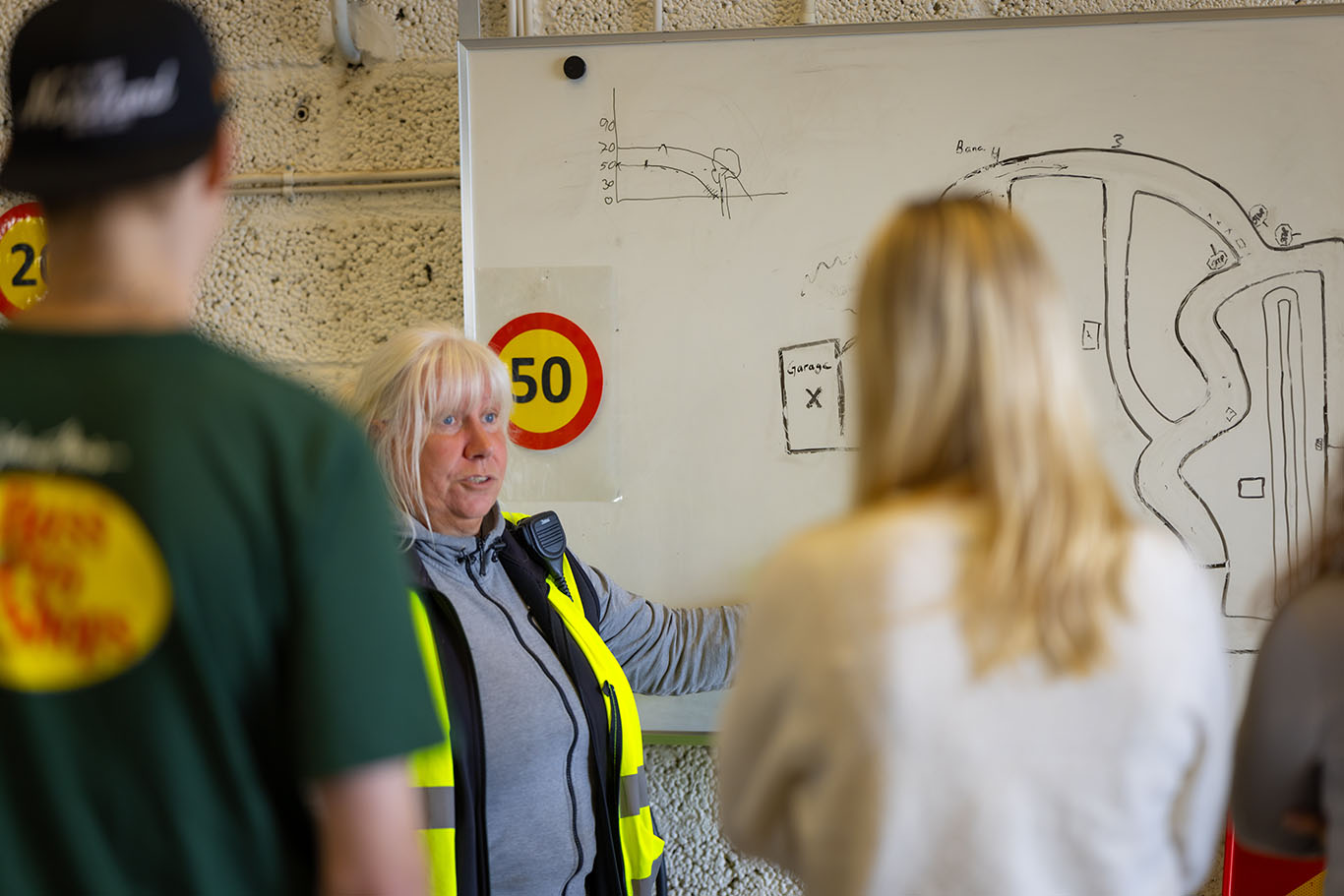 Våra trafiklärare agerar då elev och du får som handledare på riktigt prova göra ett ingripande och nödbromsning i våra bilar.